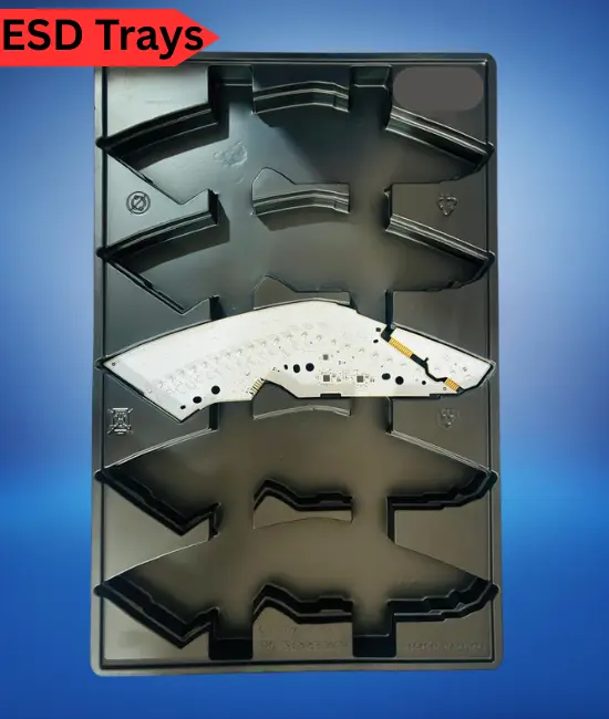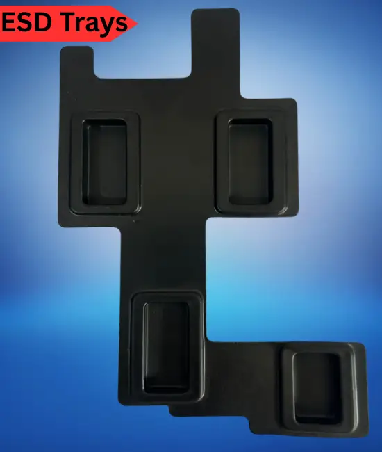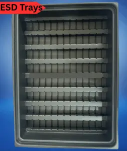 ESD trays, also known as electrostatic discharge trays, are specialized trays designed to protect sensitive electronic components from damage caused by electrostatic discharge (ESD). ESD can occur when there is a sudden flow of static electricity between objects, which can potentially harm or degrade electronic devices and components.